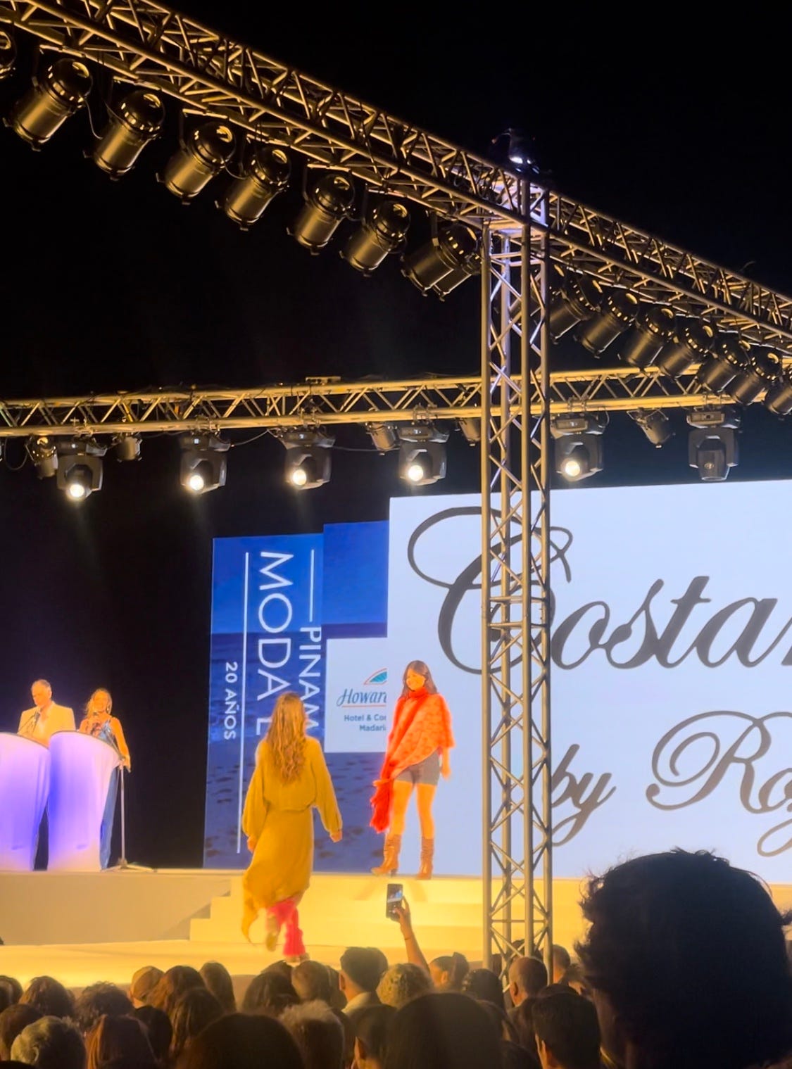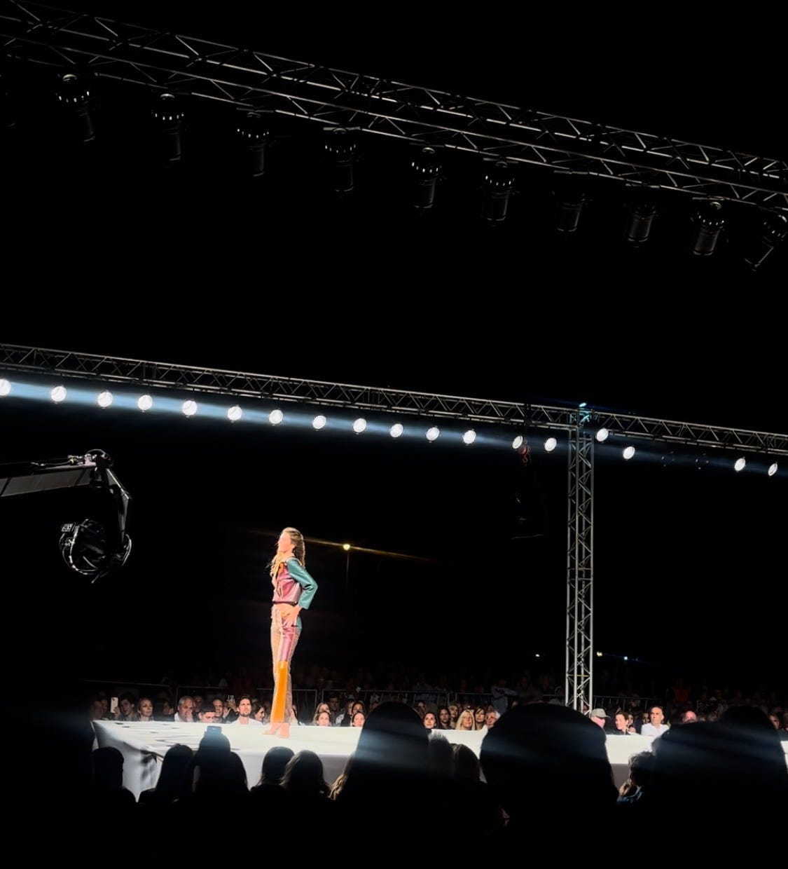 “(…) El emprendimiento familiar, ellas son: Erica y Andrea Constantini”, lo llamó el conductor cuando apareció Constantini by Roz. Su colección “Florecer” apostó por los colores como tejidos, polainas, bufandas y ponchos.