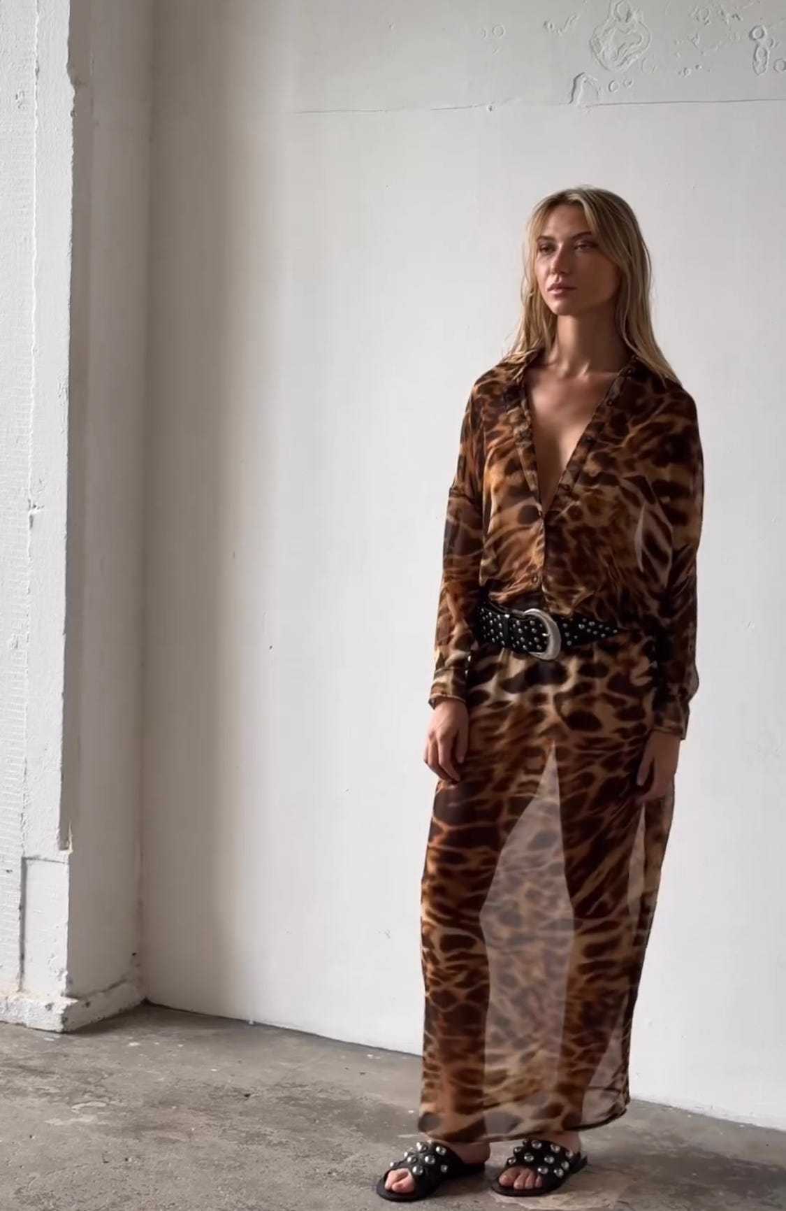 Nono Saiz abrió la pasarela junto a sus clásicos atemporales. Los básicos alberagaban las 50 sombras de neutros: nude, crema, beige, gris y negro. Con el mensaje empoderador hacia la mujer de la marca, irrumpieron dos de los conjuntos: la camisa spencer y maxifalda transparentes con el animal print junto al mini vestido strapless de dos tipos de denim. La asistente a cargo de la marca, Sofía Bermudez, comentó: “(…)fuimos viendo las prendas que teniamos y como queriamos que salgan sin que se repitan demasiados los colores seguidos”.