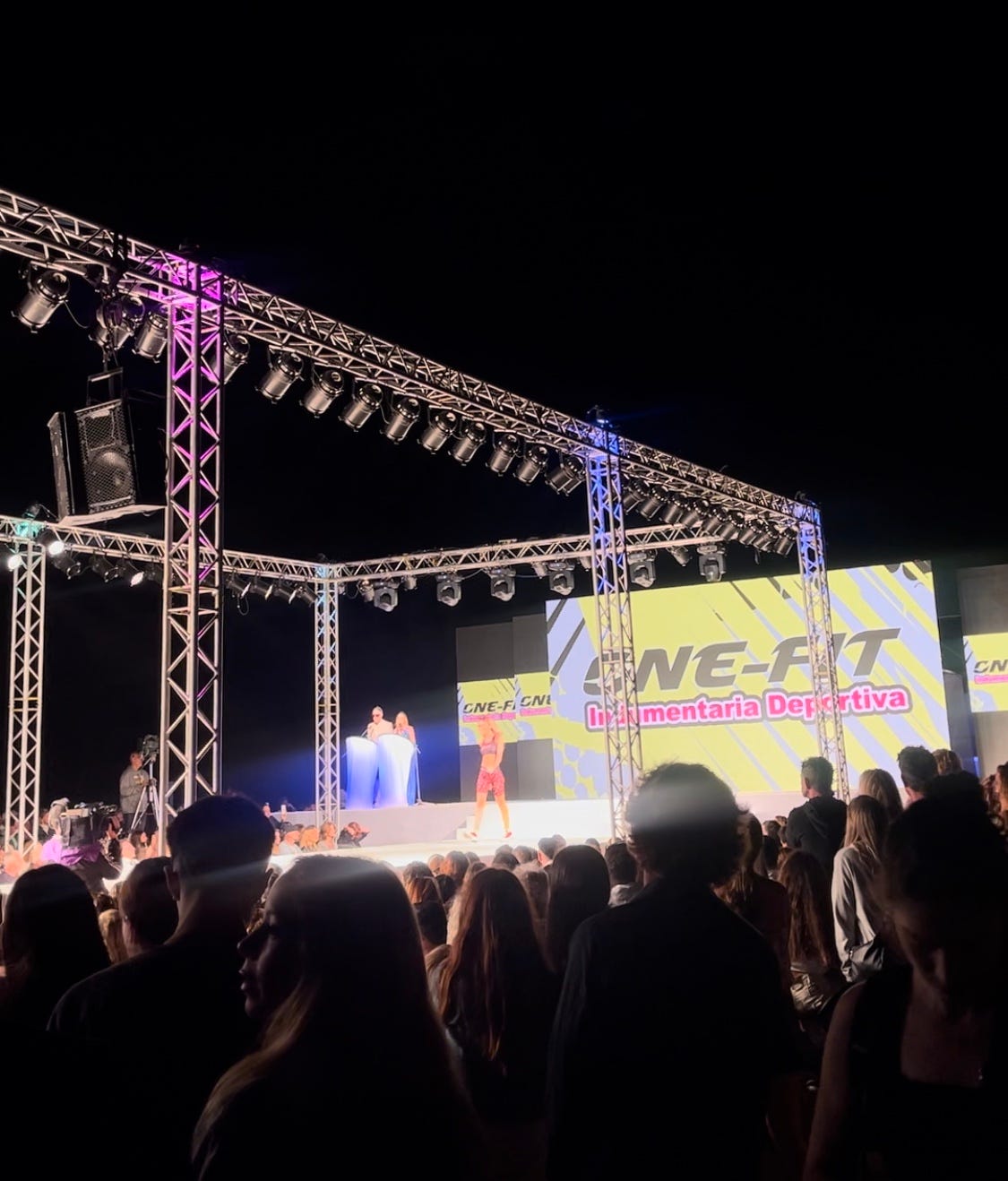 Se dirigió a la pasarela One fit, indumentaria deportiva, que trabajó tanto colores como neutros. Siluetas pegadas al cuerpo como calzas, bikers y tops para poder hacer ejercicio.