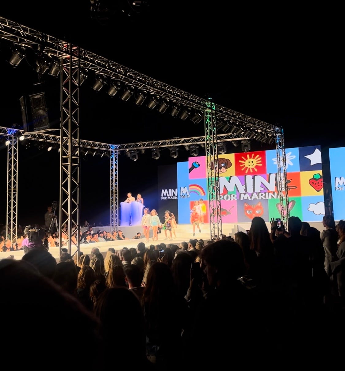Siete modelos infantiles pasaron al desfile vistiendo Mini por Marina. Salieron todos juntos con indumentaria colorida y el público hizo un “aww” por la ternura que emanaban.