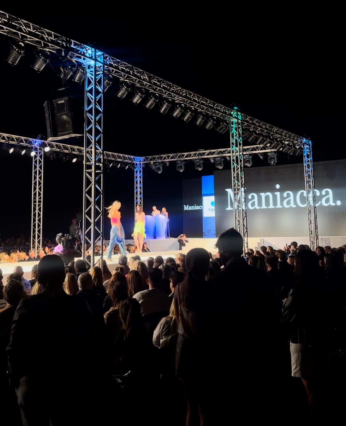 Maniacca siguió la línea maximalista que tuvo la marca anterior. Desde volados, colores fluorescentes, bordados y muchos brillos. “(…) Para mujeres audaces con personalidad (…)”, se refirió a la marca Soledad Villarreal.
