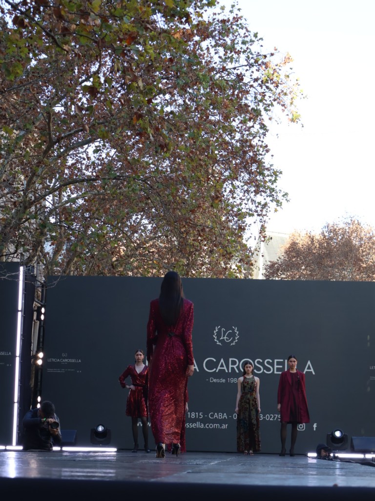 Leticia Carossella continuó la pasarela y jugó con una propuesta de prendas, en bordo, terciopelo y paillettes, con distintas siluetas.