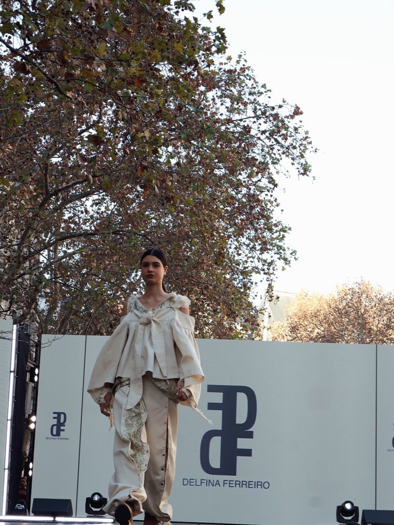 Delfina Ferreiro, la ganadora del concurso de BAFA, llevó a vida a su diseño ‘Indeleble’. La tandilense se inspiró en cuadros del costumbrismo del siglo XIX que vio en una materia de la facultad: “en su momento, los pintores de ese entonces trataban de reflejar esa identidad nacional y me parecía importante traerlo al contexto de hoy en día. A la vez me parece súper interesante toda la indumentaria del gaucho”, reflexiona.
