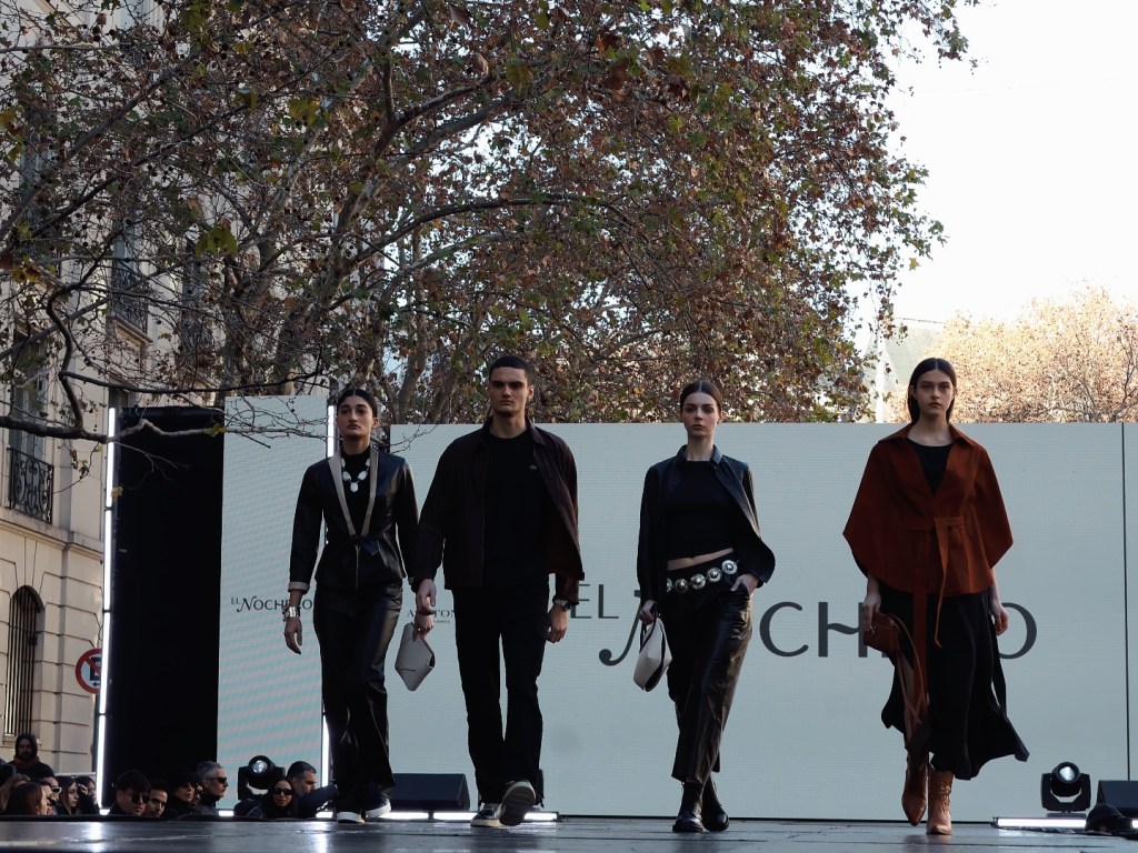 El Nochero siguió y presentó cuatro looks que connotaban su lema: “artesanía, tradición y diseño” a través de los accesorios y el estilismo de las prendas. Una de las modelos utilizó un abrigo similar a un poncho. Todos usó prendas o calzado en cuero. “La filosofía y el compromiso de El Nochero es la protección del medio ambiente”, compartió en las redes sociales.