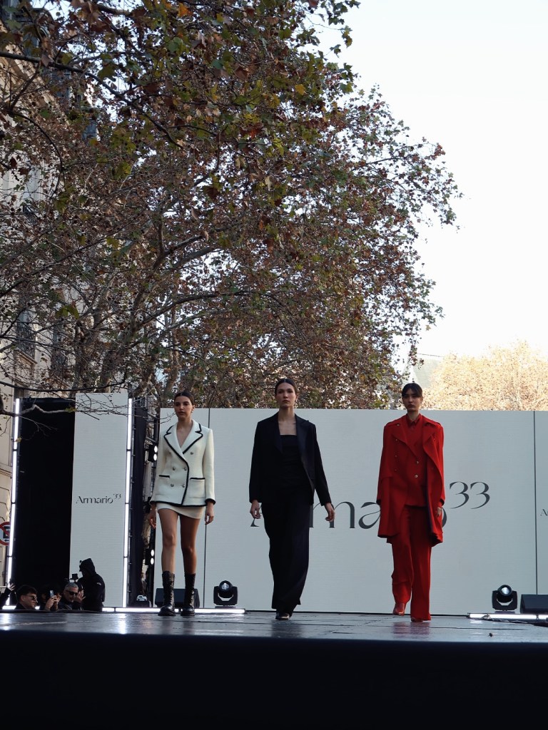 Armario 33 apostó con su nombre y tres modelos que con atuendos totalmente diferentes, caminaron la pasarela. La filosofía de marca se refiere al estudio que describe que 33 prendas son suficientes para combinar y armar atuendos durante tres meses: sastrería, sin estampas, blanco, negro y rojo fueron parte de la propuesta.